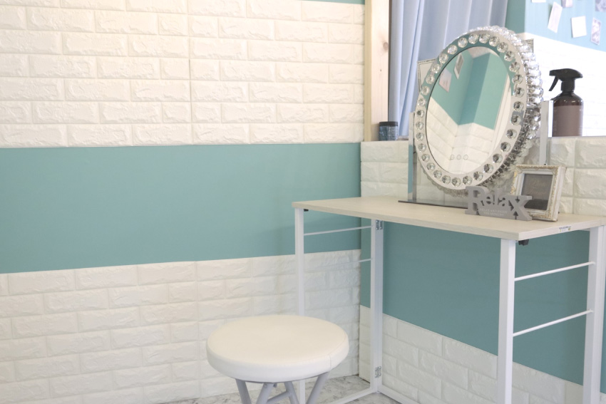 大阪市西成区・天下茶屋にあるリラクゼーションサロン Calm。落ち着いた青と清らかな白でまとめた空間は、訪れる方の心をそっと整えてくれます。