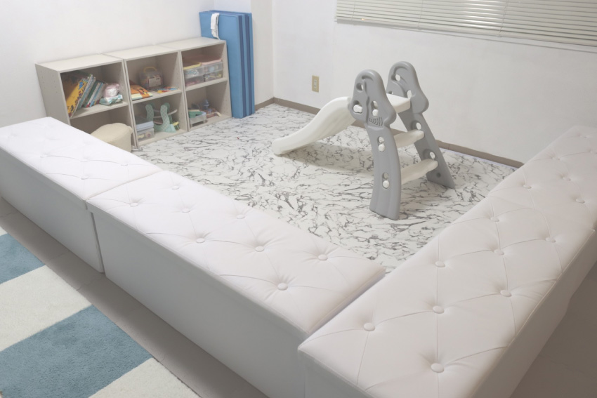 Calmには、大人がふたり寝転べるほどの広々としたキッズスペースがあります。床もクッション性があり、安全です。